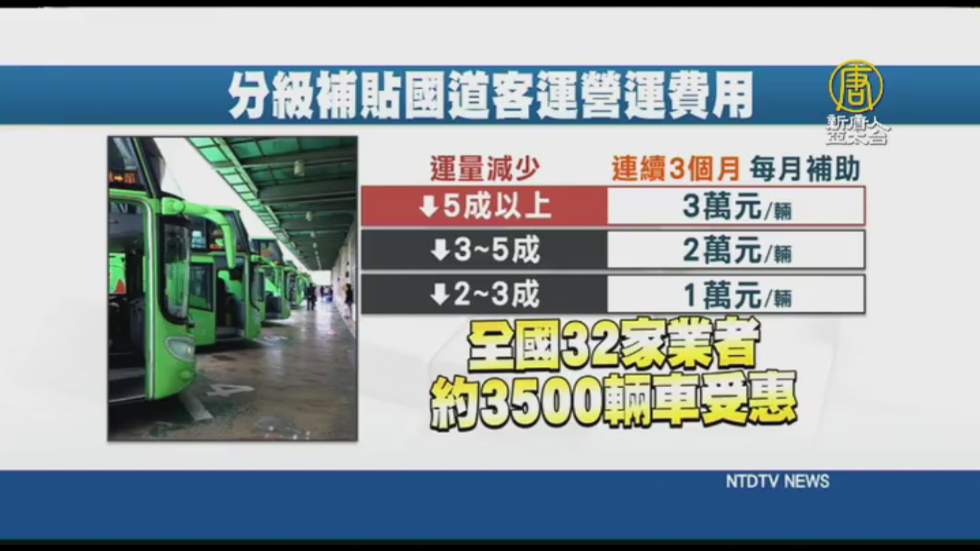 【新唐人亞太台 2020 年 04 月 13 日訊】中共肺炎疫情重創交通運輸業,國道客運業者表示,目前運量與去年同期相比,下降幅度高達95.6%,交通部長林佳龍13日宣布,將再擴大客運補助範圍,依運量下降幅度分級補貼營運費用,每輛車每月最高可補助3萬元。