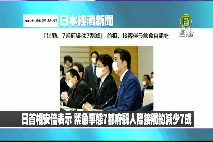 【新唐人亞太台 2020 年 04 月 14 日訊】來看到日本經濟新聞報導:日本首相安倍晉三表示,緊急事態7都府縣,人際接觸約減少7成。