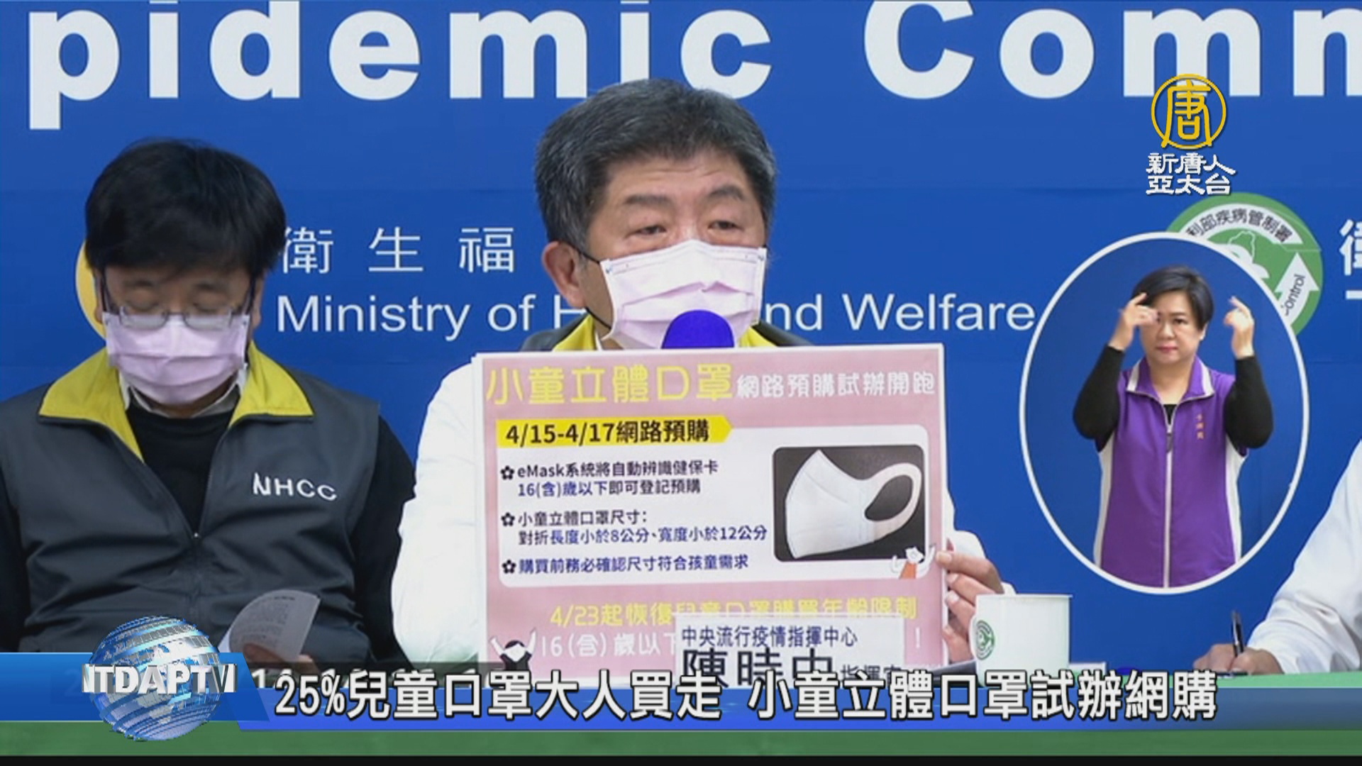 【新唐人亞太台 2020 年 04 月 14 日訊】歡迎回來,台灣推出口罩實名制政策,並且將販賣的方式逐步修正,讓民眾購買上更便利。現在為了解決家長買不到兒童口罩的問題,中央決定試辦小童立體口罩,全面網路販售。並且恢復成人不得買兒童口罩的規定。