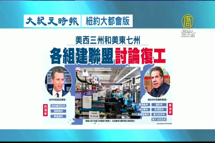 【新唐人亞太台 2020 年 04 月 15 日訊】接著看到大紀元時報紐約大都會版報導:美國西部三州和美國東部七州,各組建聯盟討論復工。
