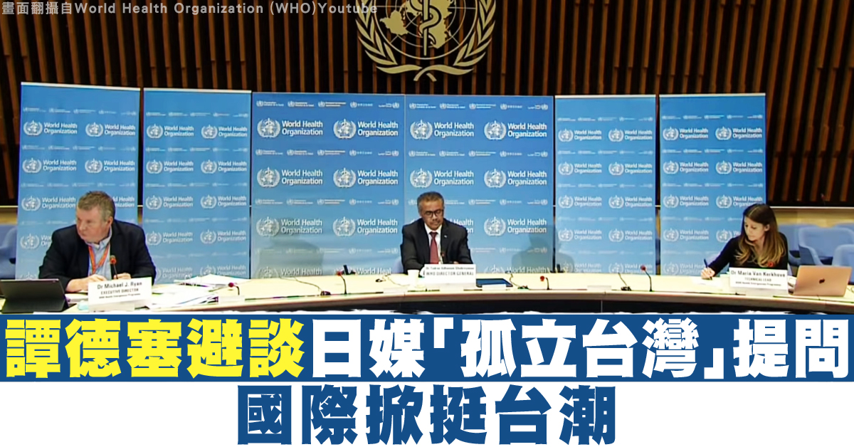 世界衛生組織15日在日內瓦總部召開疫情記者會,NHK記者透過連線向譚德賽(Tedros Adhanom Ghebreyesus)提問,為何孤立台灣?為何將「政治」擺在全球公衛健康之上?