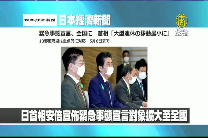 【新唐人亞太台 2020 年 04 月 17 日訊】來看到日本經濟新聞報導:日首相安倍宣佈緊急事態宣言對象擴大至全國。