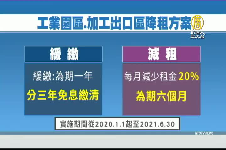 【新唐人亞太台 2020 年 04 月 17 日訊】台灣經濟部,為了緩解疫情對製造業的衝擊,今天拍板,工業園區與加工出口區的租金調降2成,業者可選擇緩繳或是減免。科學園區的租金調降也比照辦理。而隨著台灣疫情逐漸趨緩,行政院政務委員龔明鑫表示,有信心在6月進入振興階段。