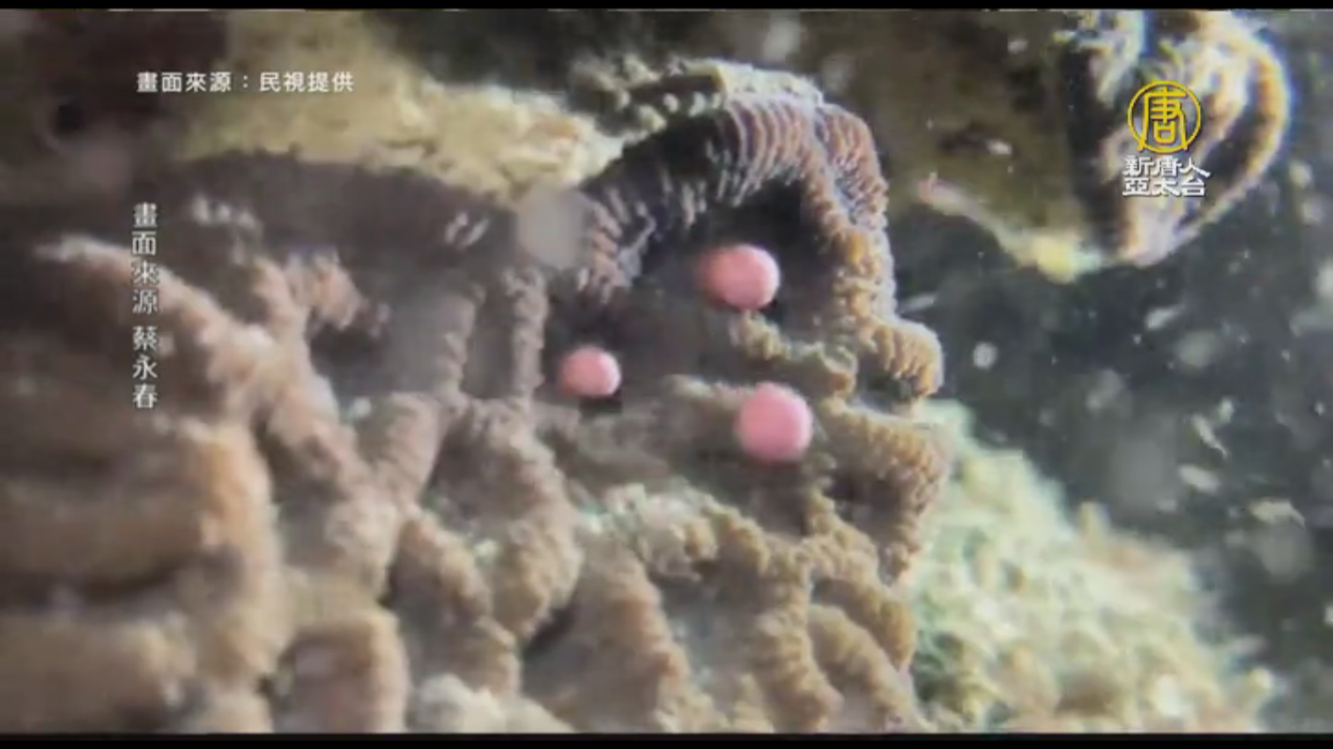 這是潛水教練受墾管處委託,14號晚上到核三廠出水口潛水時拍到的畫面,每年黃曆三月下旬,媽祖生日前兩天,晚上9點一過,墾丁珊瑚就會開始集體產卵。