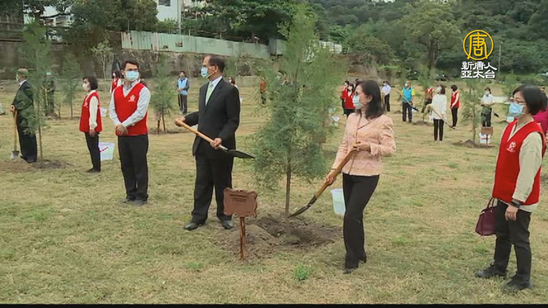 立法院長游錫?暨夫人一同鏟土種下樹苗,希望拋磚引玉呼籲全民來植樹。