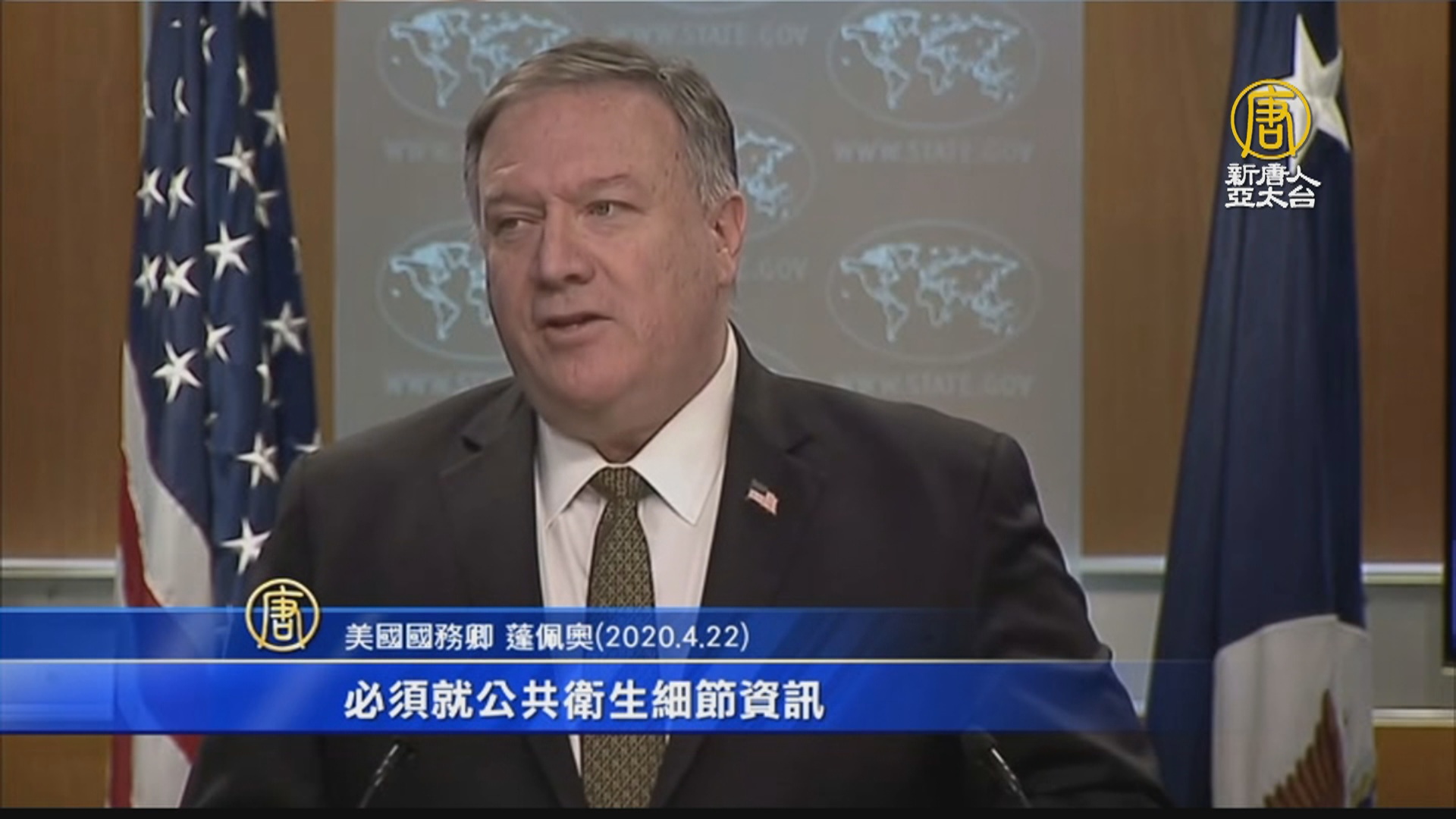 【新唐人亞太台 2020 年 04 月 23 日訊】美國國務卿蓬佩奧22號再次批評中共,沒有及時向世衛組織通報中共肺炎疫情的訊?息,並表示,在這次中共肺炎全球大流行的時刻,世界衛生組織的監管部門顯然失敗了。