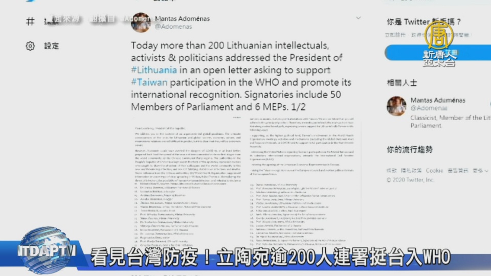看見台灣防疫!立陶宛逾200人連署挺台入WHO