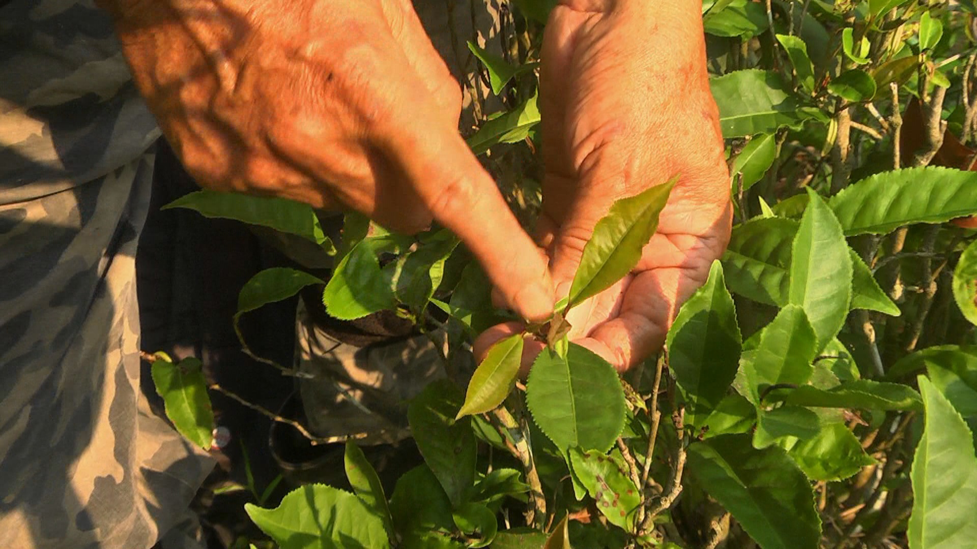 茶農 詹燕和:「這個一心兩葉,這個是兩葉,它雨水不夠所以說它兩葉,做農是靠天吃飯,所以說這句話是解不開的,所以一定要下雨,沒有下雨,有,葉子非常少。」