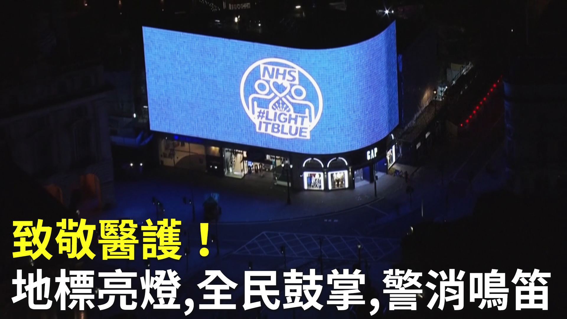 英國地標亮藍燈 全英團結鼓掌致敬醫護