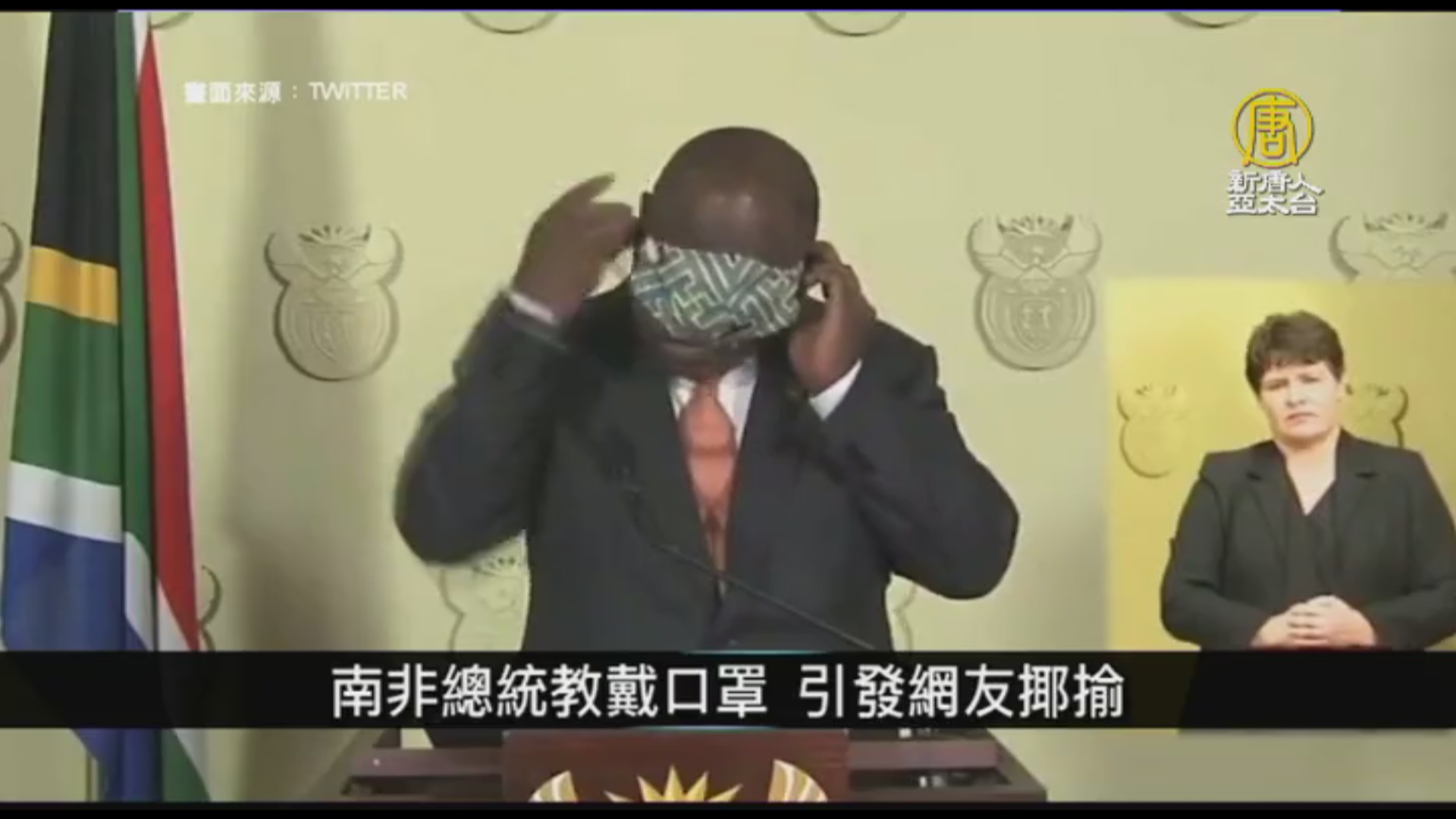 【新唐人亞太台 2020 年 04 月 25 日訊】南非總統教戴口罩 引發網友揶揄