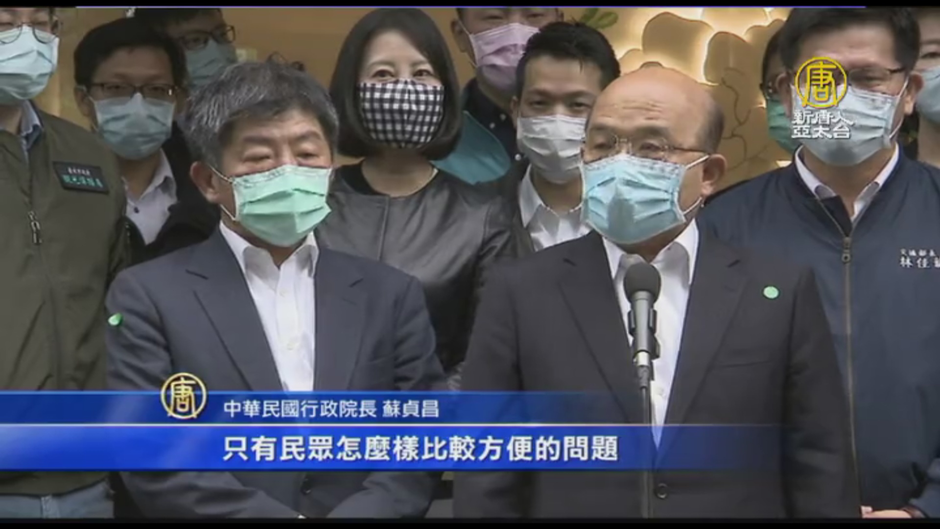 【新唐人亞太台 2020 年 04 月 25 日訊】行政院長蘇貞昌今天視察北市防疫旅館,但北市府只有副市長黃珊珊陪同視察。被問到口罩販賣機與口罩3.0議題,蘇貞昌說,沒有誰勝誰負的問題。