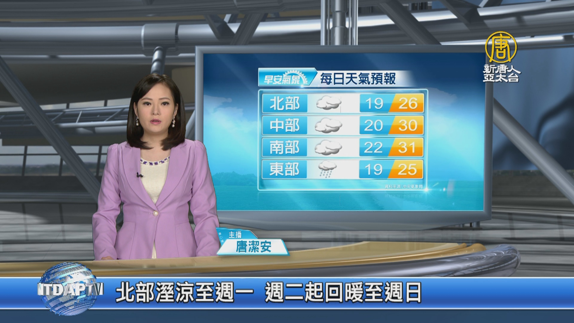 【新唐人亞太台 2020 年 04 月 27 日訊】歡迎您收看4月27日的早安新唐人,我是唐潔安,先來帶您關心今天的天氣情況。又是一個星期的開始了,東北季風增強。北部偶爾會有局部降雨,其他地區則是多雲的天氣,明天(28日)起水氣明顯減少,各地大多為多雲到晴,氣溫會一路回升到星期天。帶您一起來看到國際媒體重要訊息。