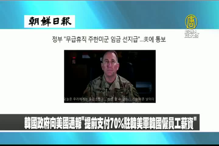 【新唐人亞太台 2020 年 04 月 27 日訊】來看到韓國朝鮮日報報導:韓國政府向美國通報,「提前支付70%駐韓美軍韓國僱員工薪資」。