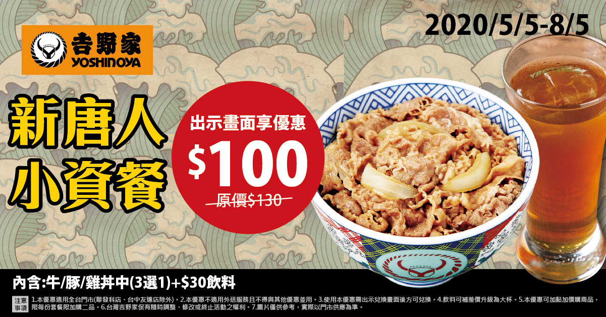 吉野家【新唐人♥雙饗餐】出示畫面享優惠
