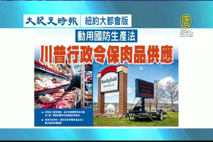 【新唐人亞太台 2020 年 04 月 30 日訊】接著看到大紀元時報紐約大都會版報導:動用國防生產法,美國總統川普行政令保證肉品供應。