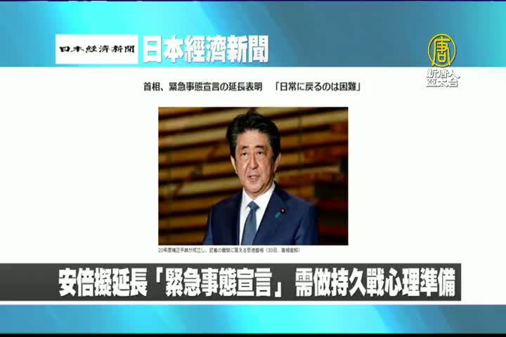 【新唐人亞太台 2020 年 05 月 01 日訊】來看到日本經濟新聞報導:日本首相安倍晉三擬延長「緊急事態宣言」,需要做持久戰的心理準備。