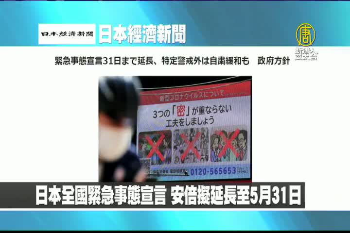 【新唐人亞太台 2020 年 05 月 04 日訊】來看到日本經濟新聞報導:日本全國緊急事態宣言,日本首相安倍晉三擬延長至5月31日。