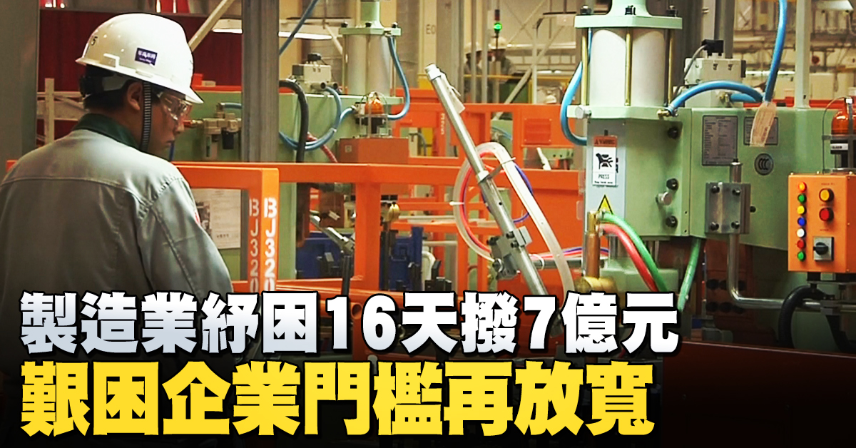 製造業紓困16天撥7億元 艱困企業門檻再放寬
