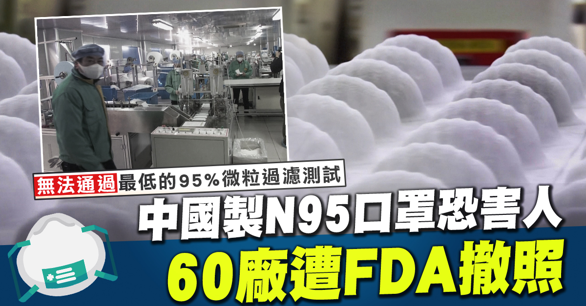 中國製N95口罩恐害人 60廠遭FDA撤照