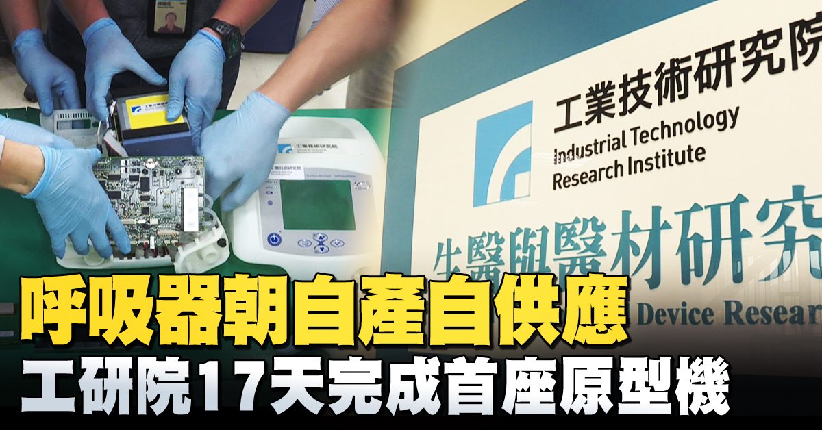 工研院透露,台灣呼吸器朝向MIT自產自製,透過3D列印,零件多數國產化,台灣也能藉此爭取布局高階醫材市場,預計10月底,完成10台呼吸器試量產,明年6月結合民間企業,力拼量產100台呼吸器。