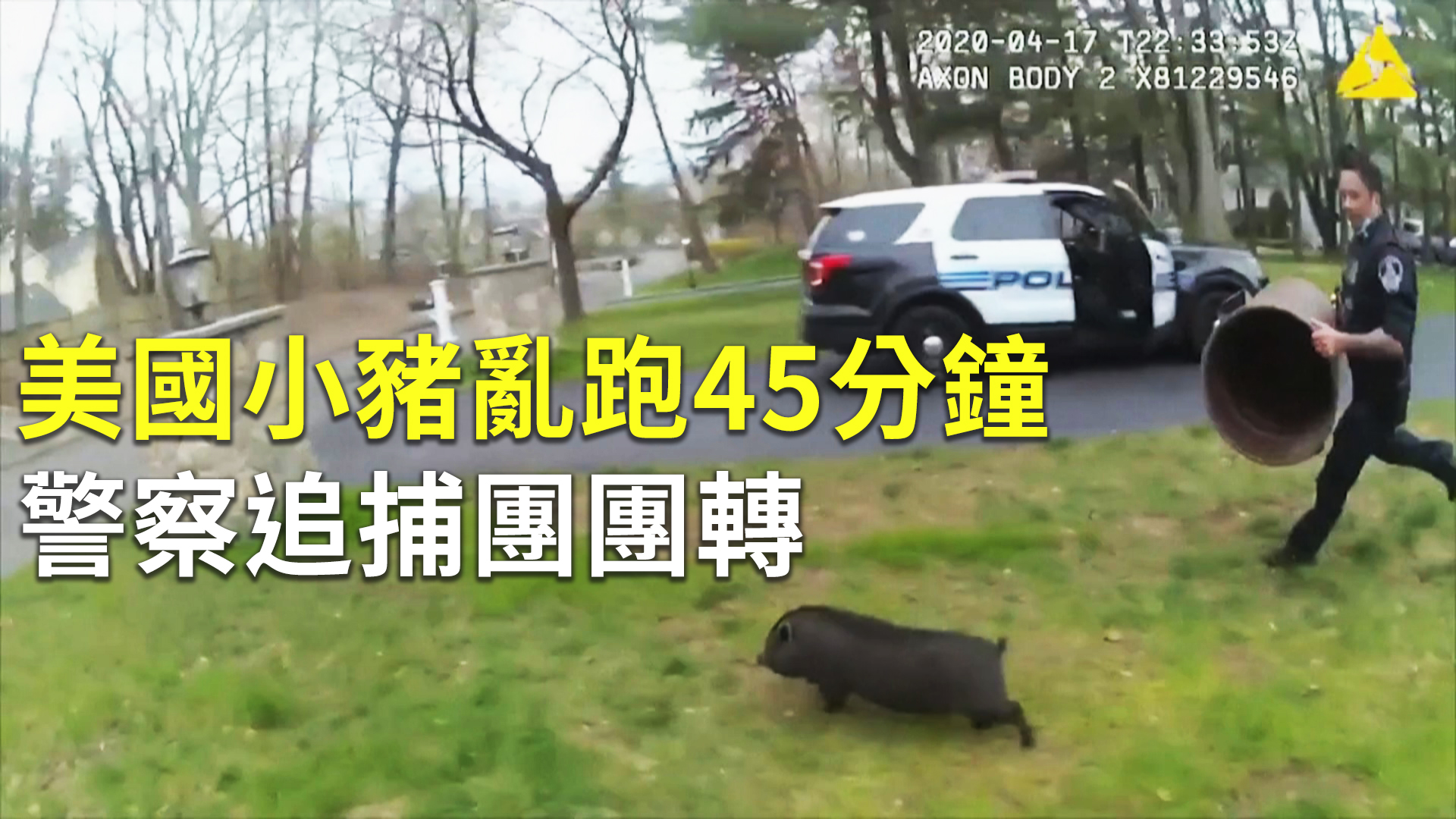 【新唐人亞太台 2020 年 05 月 09 日訊】人與動物之間的趣事,總是說不盡道不完。美國康乃狄克州有一隻小豬跑出來閒逛,警方動用了3名警察,花了45分鐘才用垃圾桶把牠追捕到案;加州則是有2隻羊駝,打扮得漂漂亮亮,跟主人上街散步,讓民眾大呼好療癒。