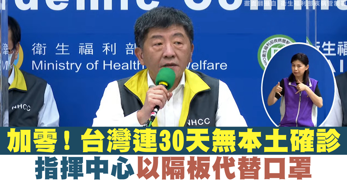 加零!台灣連30天無本土確診 指揮中心以隔板代替口罩