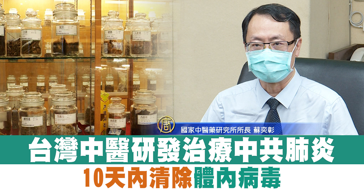 台灣中醫研究團隊沿用SARS治療經驗,找出獨門中藥配方,初步研究可在8到10天內,清除體內中共肺炎病毒。研究團隊今年初投入研究,4月3日起在三軍總醫院、台中榮民總醫院,展開中西醫合併治療,收治14名中共肺炎個案,經中醫治療,短短8到10天,有12人的病毒3次採檢陰性出院。