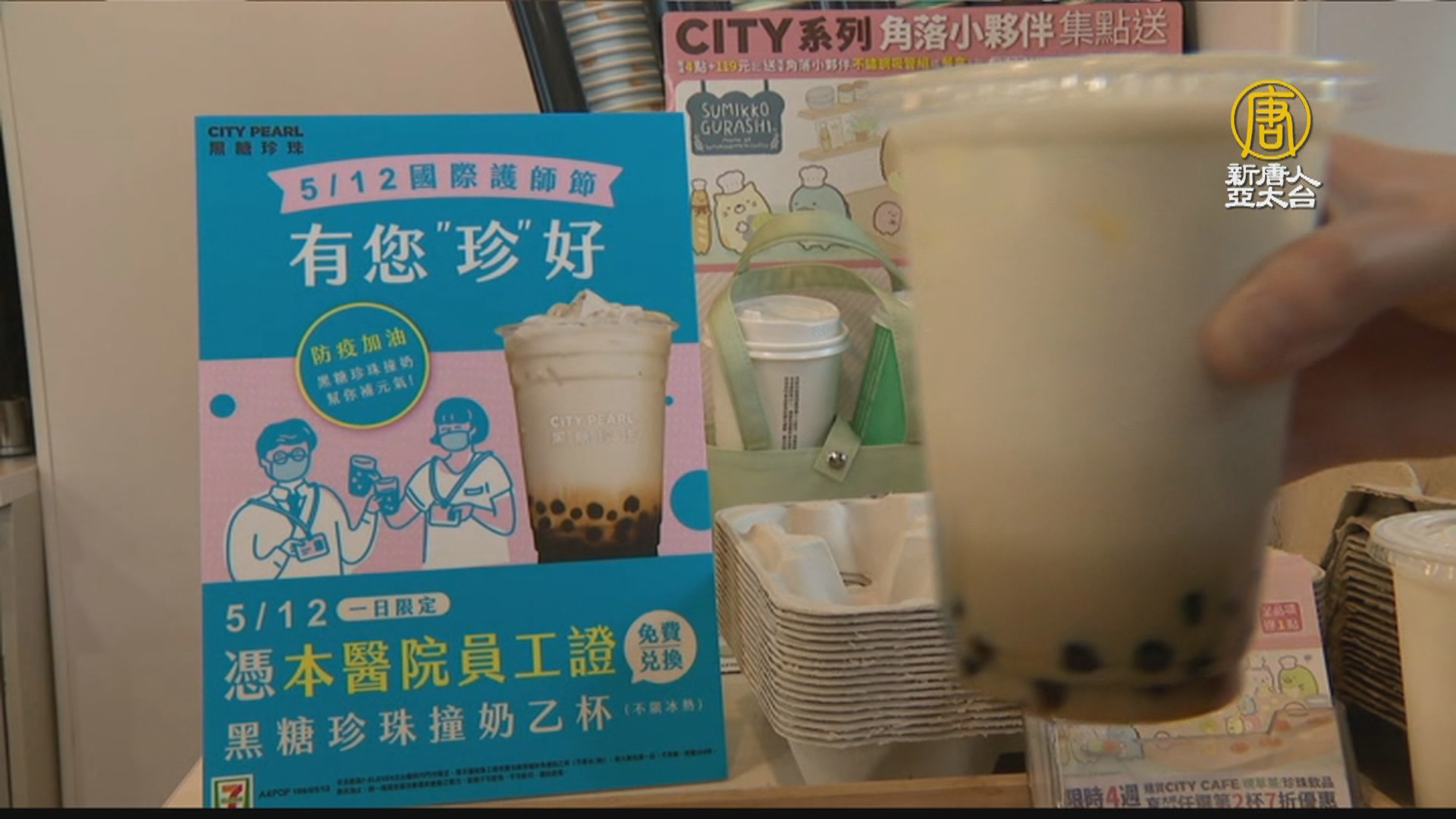 【新唐人亞太台 2020 年 05 月 12 日訊】為了感謝辛苦的醫護人員,各大超商都祭出優惠,只要拿出醫護識別證,就能免費兌換一杯珍奶,也有超市推出拍手感謝醫護活動,只要到各門市拍拍手,說出對醫療人員的感謝,就能免費喝到咖啡。