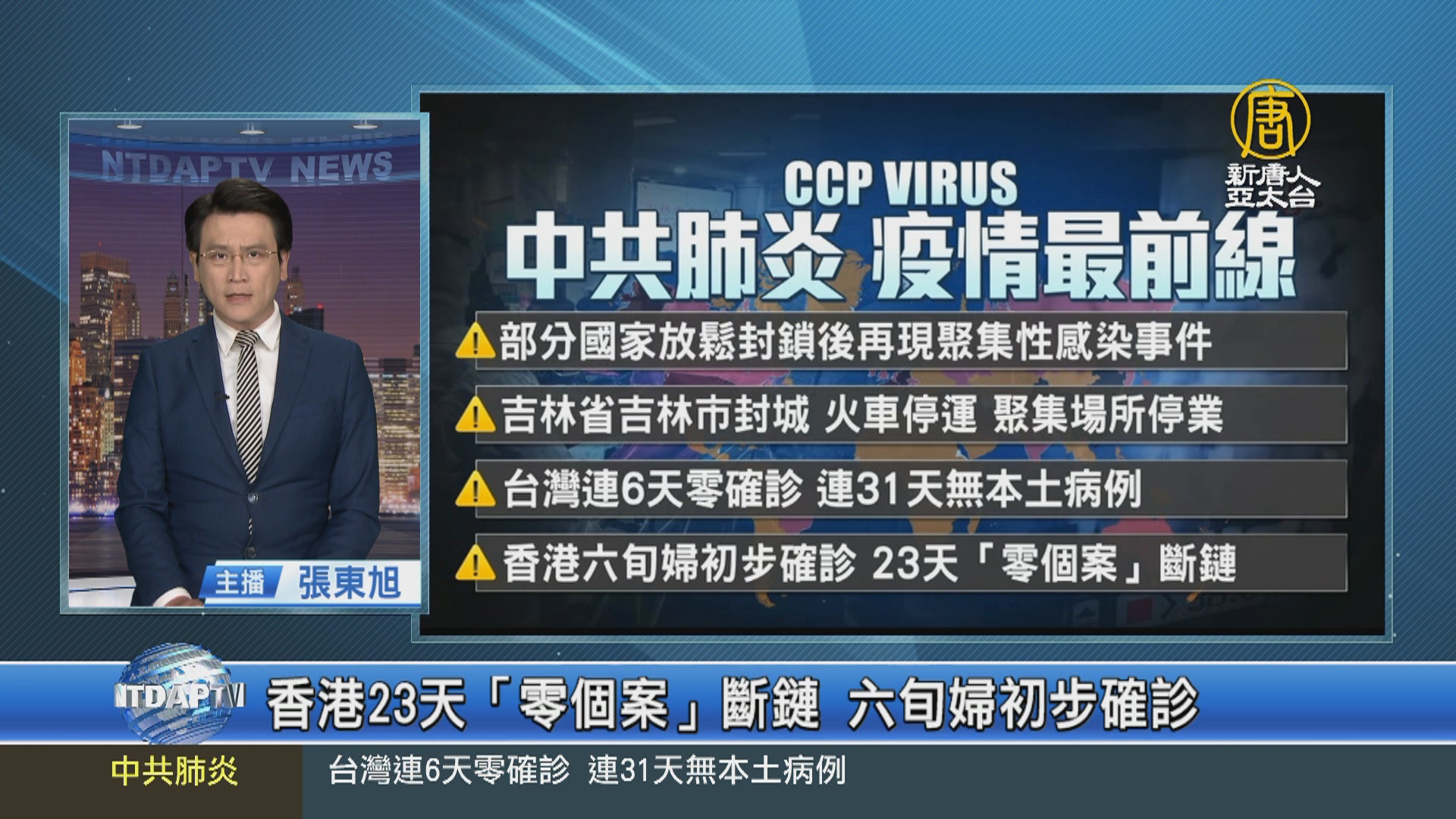 【新唐人亞太台 2020 年 05 月 13 日訊】新聞首先來看到今天(13日)的疫情重點,全球部分國家放寬封鎖後,再現聚集性感染事件。中國大陸吉林省吉林市今天封城、火車停運、聚集場所停業。台灣又一波連續6天零確診,連31天無本土感染病例。香港23天「零確診」紀錄被打破中斷,一名六旬婦人今天初步確診。