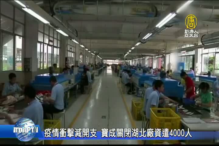 【新唐人亞太台 2020 年 05 月 14 日訊】製鞋龍頭寶成集團,繼高階主管減薪與台灣員工放無薪假,位於中國大陸的湖北廠,也確定關廠,第一波被資遣員工人數高達4000多人。對此,寶成集團強調,湖北廠的生產出貨量,占集團製鞋總生產的出貨量不到2%,疫情發生後,已與品牌客戶溝通協調,原有訂單已經轉廠生產,因此,對寶成整體製鞋產能,沒有重大影響,這也是寶成面對中共肺炎疫情,首次關廠以縮減成本。