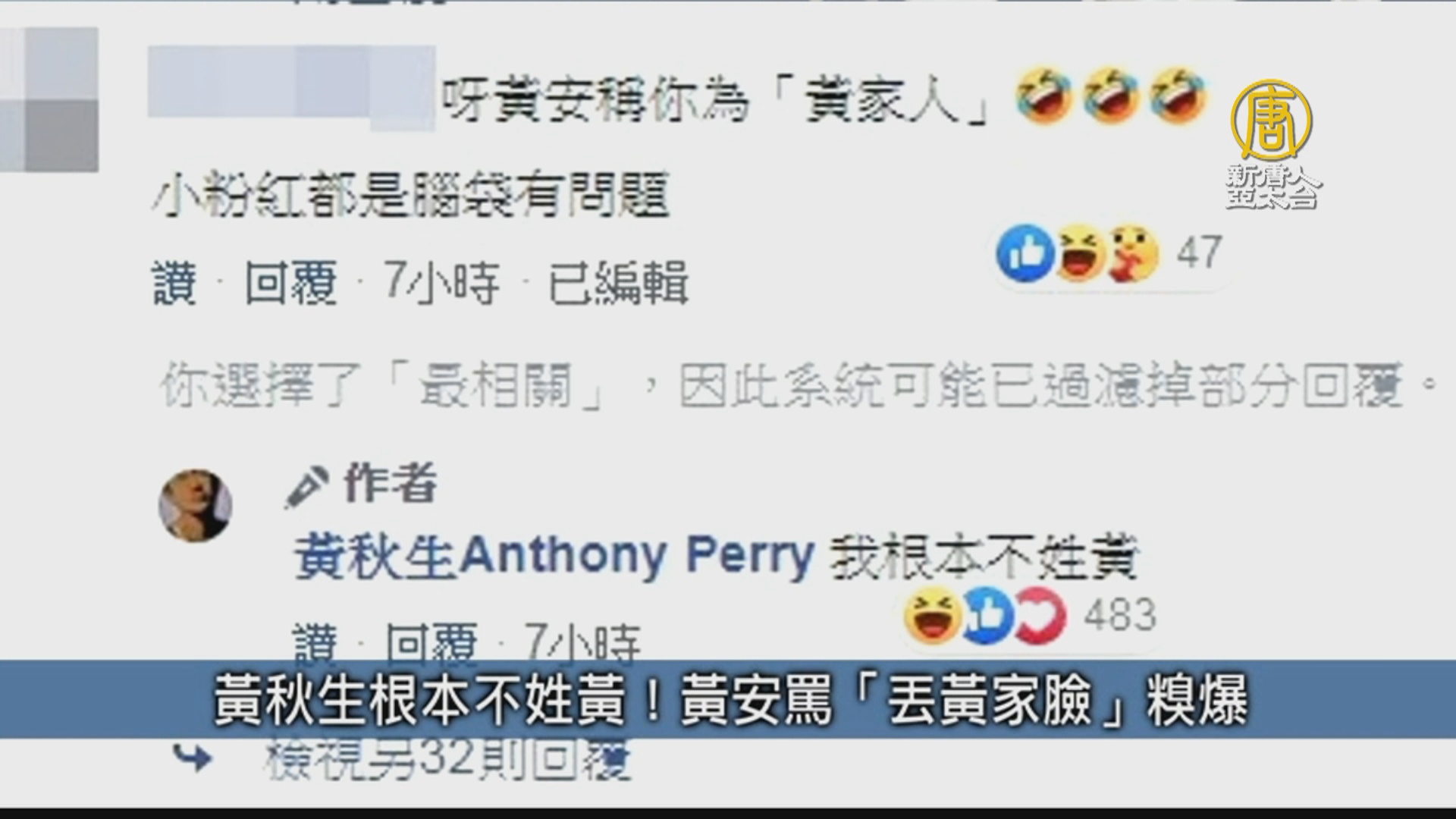 港星黃秋生透露準備入籍台灣的訊息,讓不少台灣人相當欣喜,但長期發表親中共言論的藝人黃安就不滿直呼,黃秋生此舉根本就是「丟黃家的臉」,卻反遭黃秋生打臉「我根本不姓黃」,讓黃安淪為笑柄。