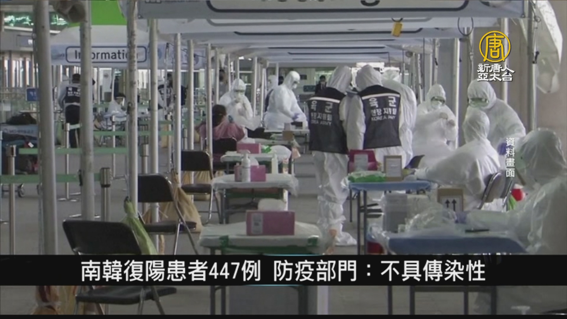 南韓境內中共肺炎確診病例中,截至5月15日,迄今有447例「復陽」病例,,佔全部1萬多確診病例中的4.5%。南韓防疫部門認為,這些患者不具備傳染性,19日起解除隔離的人員可直接回歸日常生活。