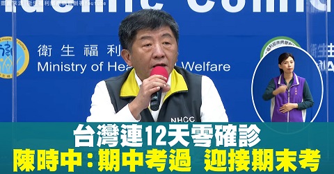 台灣連12天零確診 陳時中:期中考過 迎接期末考