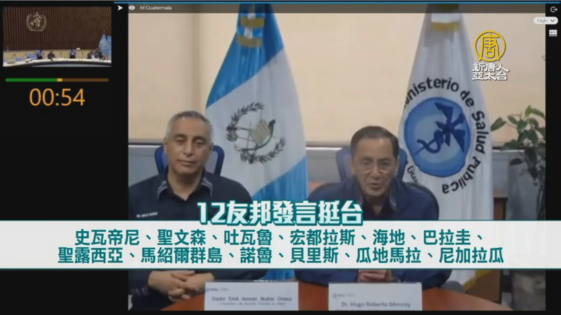 19號,預計台灣兩個友邦國家聖克里斯多福(Federation of Saint Christopher and Nevis)以及帛琉(Palau)也將在大會上發言,支持台灣。