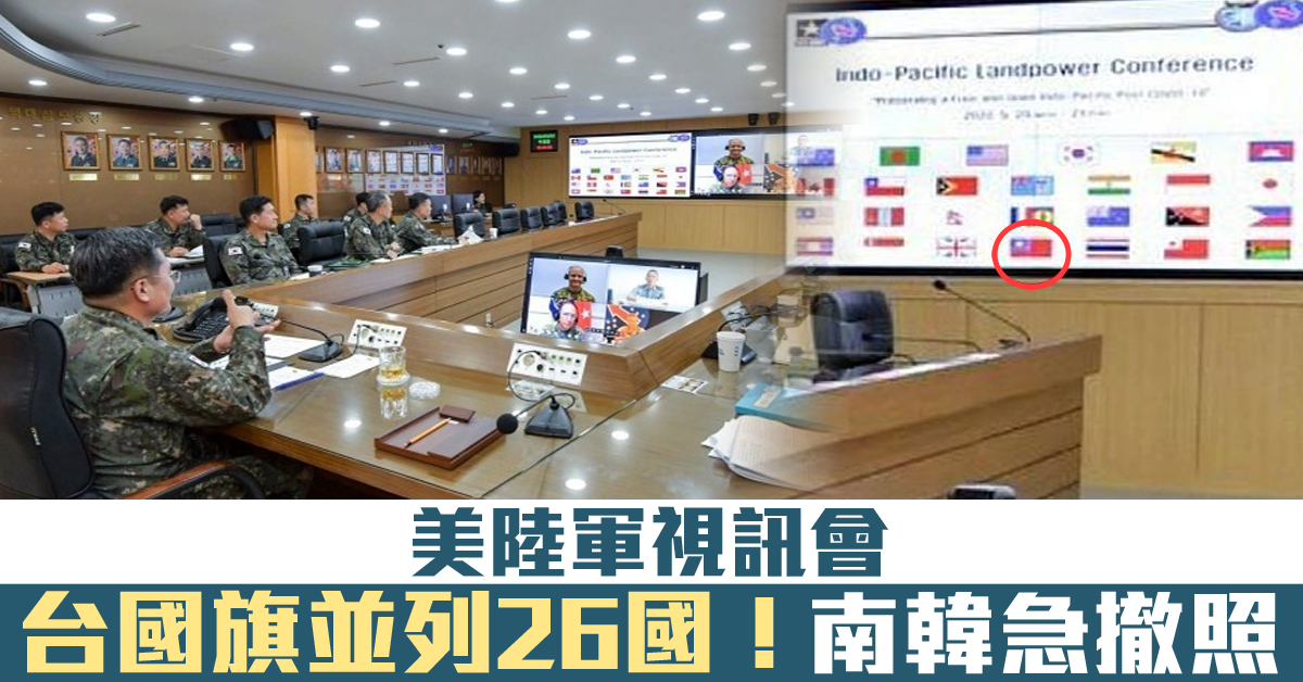 美陸軍視訊會 台國旗並列26國!南韓急撤照