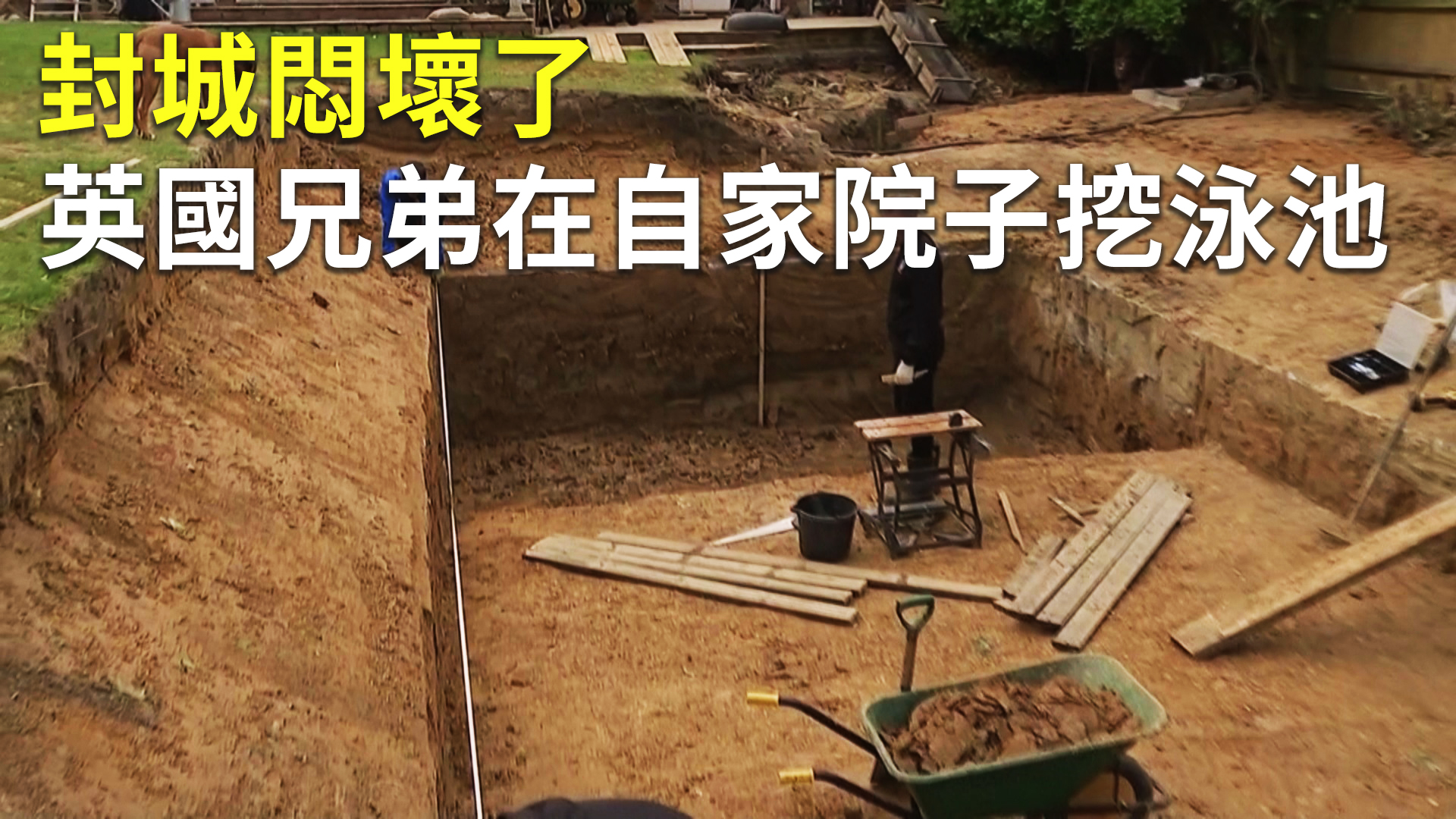 【新唐人亞太台 2020 年 05 月 22 日訊】由於中共病毒疫情讓許多國家下達封城禁令,在不能外出的情況下,英國一對兄弟可悶壞了,竟然在後院挖出一個大坑,想蓋一座天然泳池。