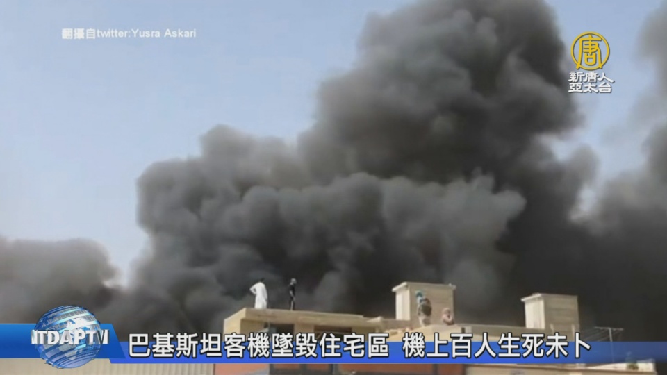 【新唐人亞太台 2020 年 05 月 22 日訊】巴基斯坦一架空中巴士A320型客機,從拉合爾飛往喀拉蚩的飛機,機上搭載了約100名乘客,22日在真納國際機場(Jinnah InternationalAirport)附近墜毀,墜機現場冒出大量黑煙,有民眾捕捉到驚悚畫面。