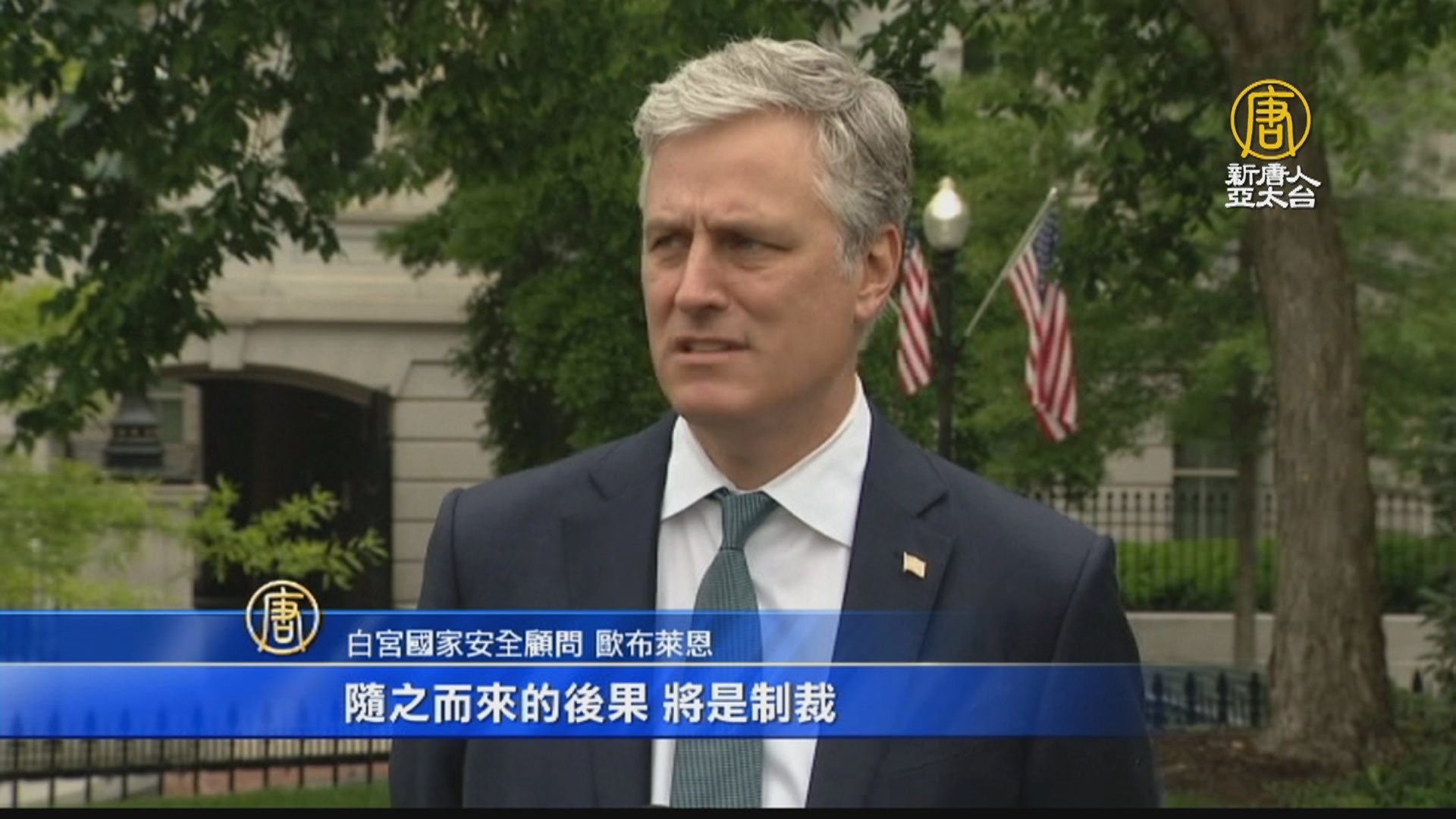 【新唐人亞太台 2020 年 05 月 25 日訊】美國白宮國家安全顧問歐布萊恩24日表示,中共如果強行通過國安法,恐遭美國制裁,同時威脅香港作為金融中心的地位。根據新華社報導,中國大陸全國人大代表,今天(25日)上午九點多,將會審議草案。