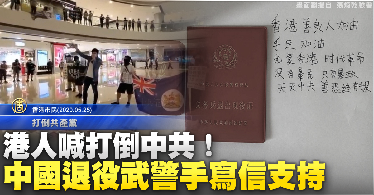 好,您看到的是,在香港IFC廣場「天滅中共 消滅共產黨」的口號響徹商場,抗爭者不斷重複口號及唱願榮光歸香港,另外,最新一段影片流出,一名中國前武警拍下手寫信,支持香港抗爭者:上面寫到,香港善良人加油、手足加油!光復香港,時代革命;沒有暴民,只有暴政;天滅中共,善惡終有報。