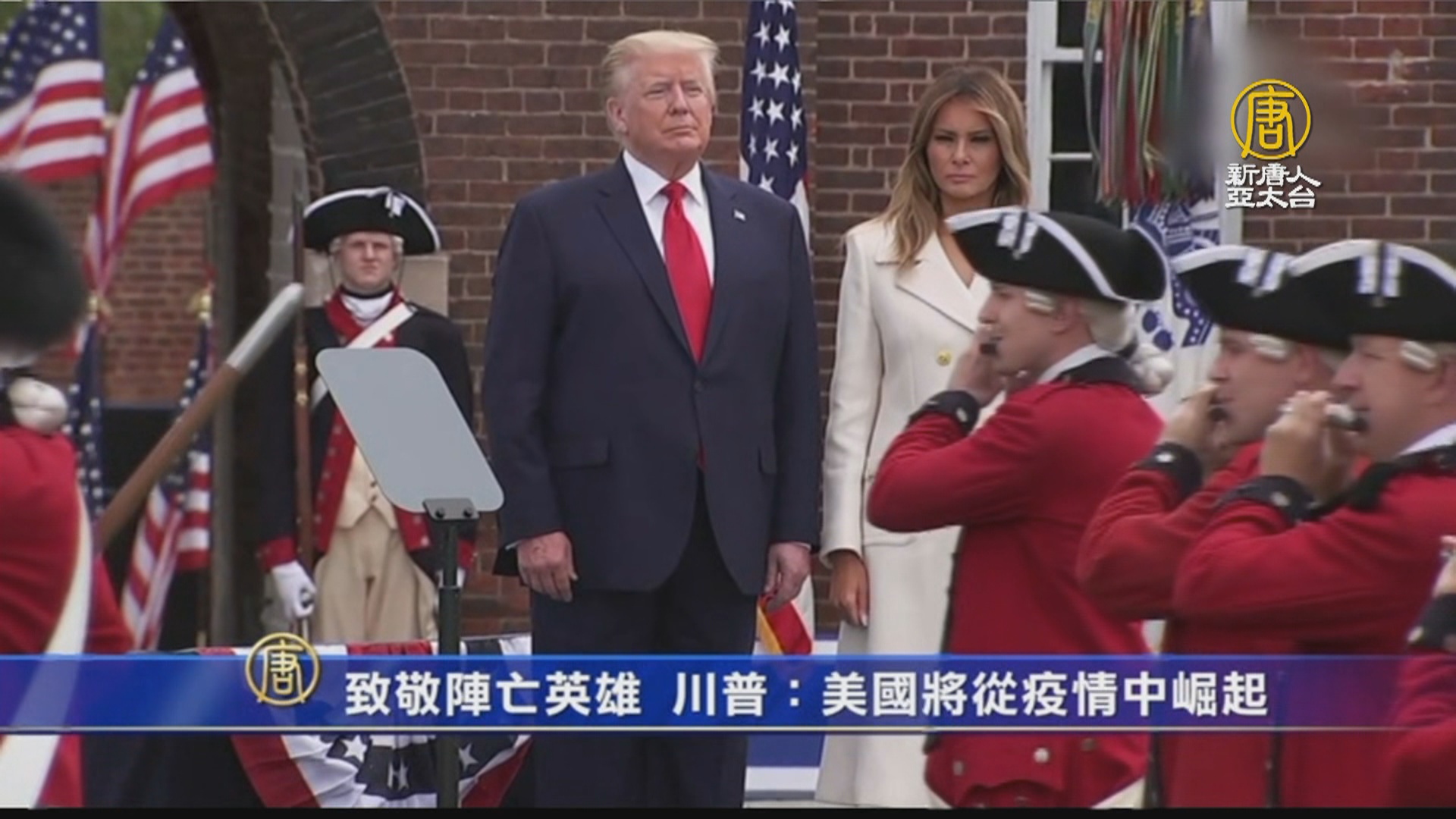 【新唐人亞太台 2020 年 05 月 26 日訊】週一當天,川普總統在「阿靈頓國家公墓」敬獻花環後,來到位於「巴爾的摩」的麥克亨利堡,參加陣亡將士紀念儀式。