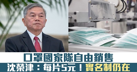 口罩國家隊自由銷售 沈榮津:每片5元!實名制仍在
