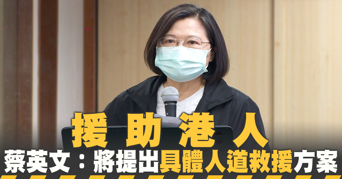 總統蔡英文針對中共強推港版國安法,主動發表談話,同時宣布已經和行政院長蘇貞昌達成共識,要組成專案小組,進行跨部會協調,由陸委會提出具體機制,提供包括港人在台居留的相關援助。