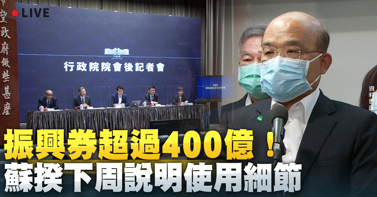 【新唐人亞太台 2020 年 05 月 28 日訊】歡迎回來,隨著台灣疫情逐漸緩和,政府即將啟動下一階段的振興計畫,其中超過400億元的振興券,民眾如何來使用,以及對台灣經濟會帶來多少助益,外界紛紛表示關心,今天行政院也在會後記者會上說明。