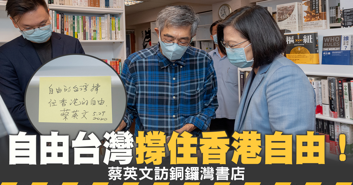 蔡英文銅鑼灣書店留言:自由台灣撐香港自由
