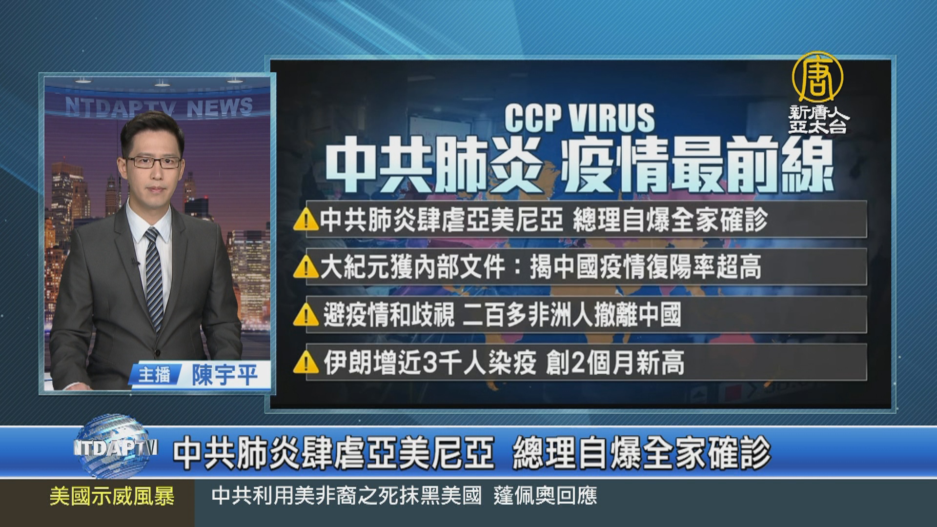【新唐人亞太台 2020 年 06 月 01 日訊】歡迎回來,帶您快速瀏覽疫情重點,中共肺炎肆虐亞美尼亞,總理在臉書直播中表示,全家人都確診感染。中國大陸疫情持續,近日,大紀元獲得中共內部文件顯示,多個省份中共病毒復陽率居高不下,有的市患者的復陽率達30%以上。為了躲開疫情和歧視,非洲國家尼日當局表示,已從中國疏散了268名國民。被認為嚴重低報數據的伊朗,今天通報新增近三千例確診,這是該國兩個月來單日確診最高的一天,全國總計逾15萬人。