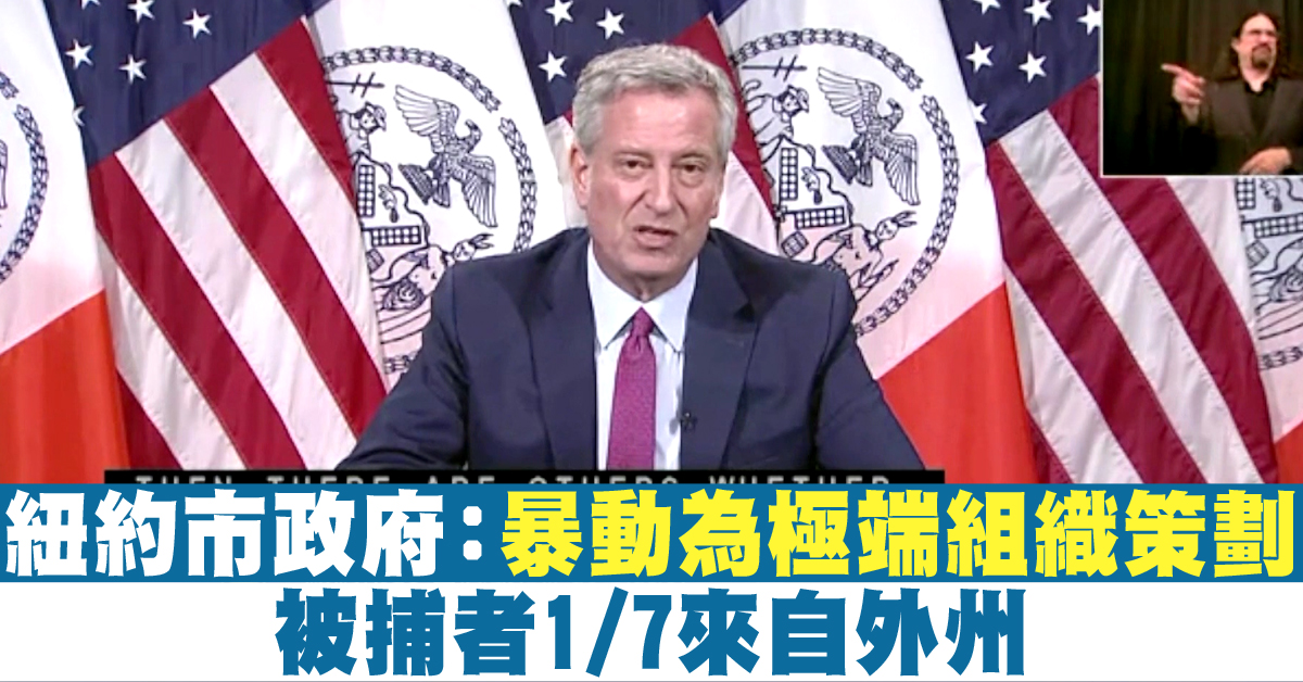 紐約市長白思豪週一表示,將尊重和平抗議者,並處理旨在製造暴力的份子。