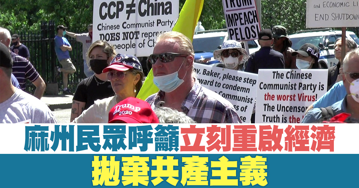 【新唐人亞太台 2020 年 06 月 03 日訊】近日,數百人在麻薩諸塞州政府大樓外集會,要求儘快解封麻州,並且譴責中共隱瞞疫情及迫害人權,呼籲麻州政府和所有美國人拋棄中共和共產主義。