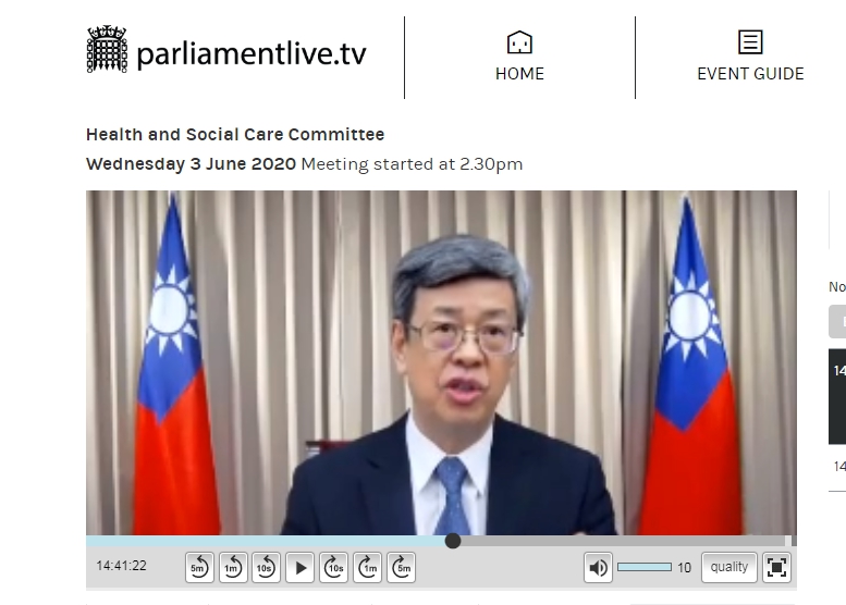 台防疫再被國際肯定 陳建仁視訊聽證英國國會