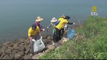 2018-06-09 21:00:18配合世界海洋日,高雄旗津今天(6月9日)有一場淨灘活動,總共有超過300位大人小孩一起參加。由於天氣很熱,不少民眾是撐著洋傘、戴著帽子,全套防曬裝備來淨灘。被撿起來的垃圾,從保麗龍、塑膠瓶蓋到保特瓶都有,還有潛水人員下海幫忙清除海底垃圾。