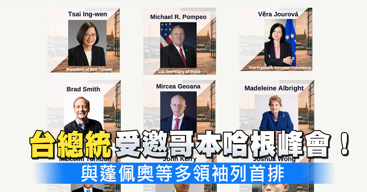 台總統受邀哥本哈根峰會!與蓬佩奧等多領袖列首排